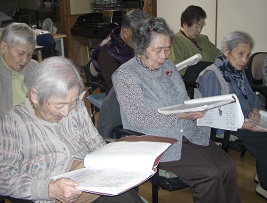 デイサービスにある歌集に載っている曲は演奏に合わせて一緒に歌いました。